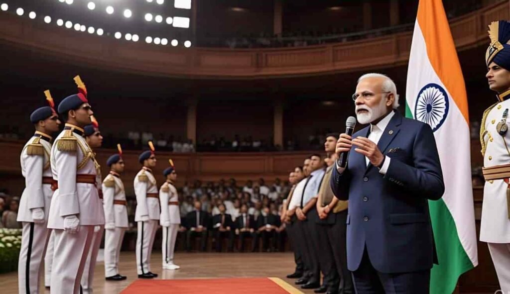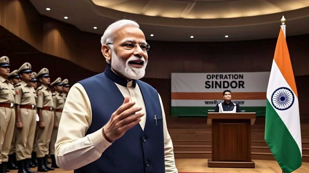 श्री मोदी ने बेस का दौरा किया और वर्दीधारी वायुसैनिकों का अभिवादन किया, जिन्होंने मंगलवार सुबह बिना किसी पूर्व सूचना के वहां पहुंचने के बाद “भारत माता की जय” के नारे लगाए। उन्होंने कहा, “जब हमारे सशस्त्र बल परमाणु ब्लैकमेल की हवा निकालते हैं, तो हमारे दुश्मन ‘भारत माता की जय’ के महत्व को समझते हैं।” “भारत माता की जय’ केवल एक नारा नहीं है, बल्कि हमारे सैनिकों की राष्ट्र के लिए अपना जीवन समर्पित करने की प्रतिज्ञा है। जब हमारे ड्रोन और मिसाइल हमारे दुश्मनों पर हमला करते हैं, तो वे ‘भारत माता की जय’ सुनते हैं,” उन्होंने कहा। “आपकी वीरता की कहानियाँ इतिहास में हमेशा के लिए अंकित हो जाएँगी। मैं हमारी सेना, वायु सेना और नौसेना के जवानों को सलाम करता हूँ। आपने पाकिस्तानी सेना को हराया है, जिसे ये आतंकवादी अपनी सुरक्षा समझते हैं। हमने दिखाया है कि हम उनके घरों में घुसकर उन्हें पकड़ लेंगे,” श्री मोदी ने कहा। उन्होंने कहा कि आतंकवाद के संरक्षकों को एहसास हो गया है कि भारत पर बुरी नज़र डालने का मतलब केवल उनका विनाश होगा। उन्होंने पाकिस्तान की आलोचना की कि उसने भारतीय सशस्त्र बलों के साथ बातचीत के दौरान नागरिक विमानों का इस्तेमाल कवर के तौर पर किया।